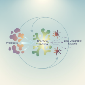Competitive Exclusion: By feeding beneficial bacteria, prebiotics help them multiply and outcompete potentially harmful bacteria for resources and attachment sites in your gut.