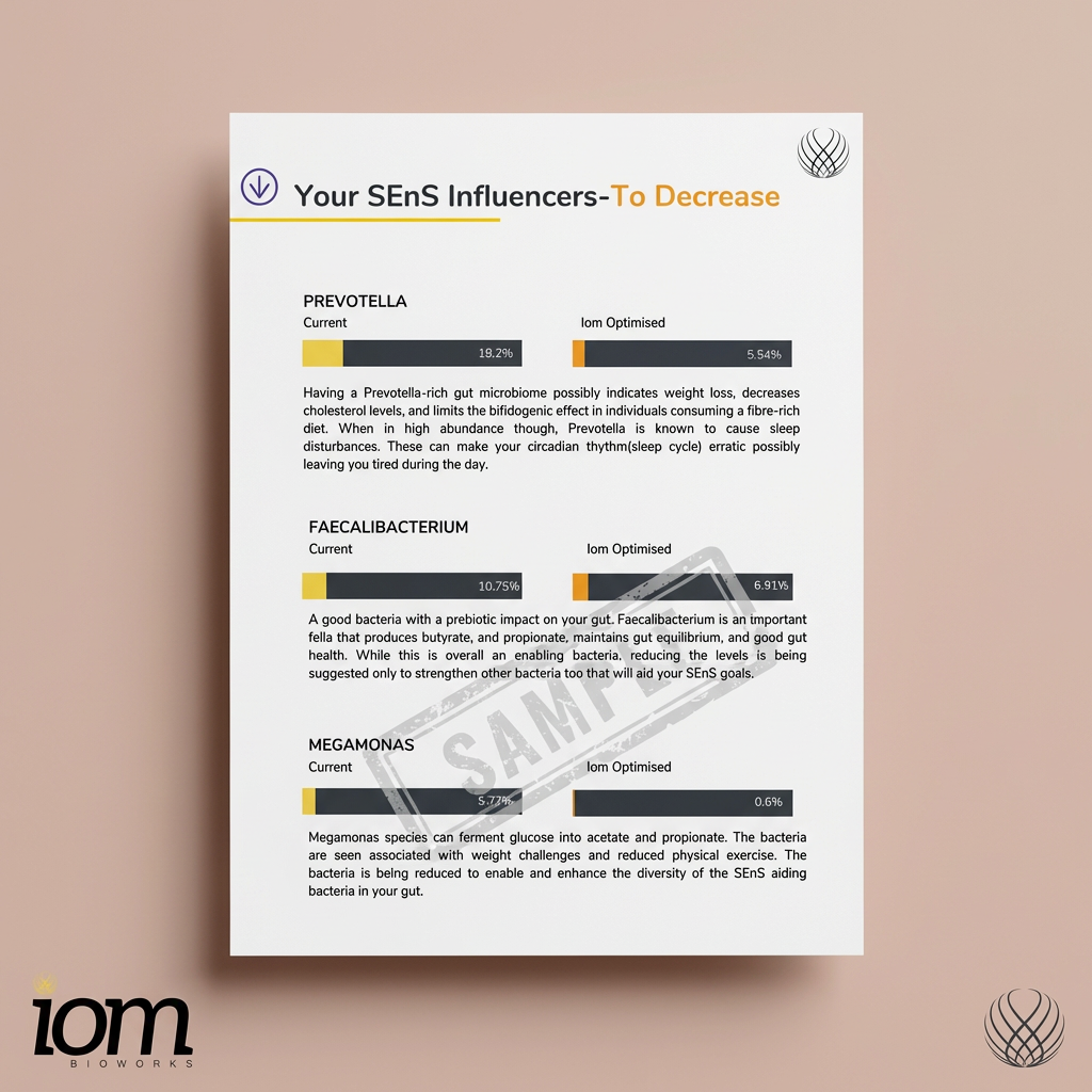 Our gut bacteria produce metabolites (chemicals) that influence how we feel, our moods, and even the quality of our sleep and energy. When the gut bacteria-our microbiome is not at its best, these chemicals fall out of balance, leading to poor sleep and recovery, heightened stress sensitivity, fatigue, and low energy levels. Gut SEnS analyses your gut bacteria and how they currently affect your sleep quality, stress response, and energy. The patented optimisation process calculates the bacterial composition ideal for you. Our modelling process helps select the ideal food to achieve this composition and nourish your gut bacteria to be at their healthiest best. Gut SEnS works to give you better sleep, reduced stress, and improved energy levels.